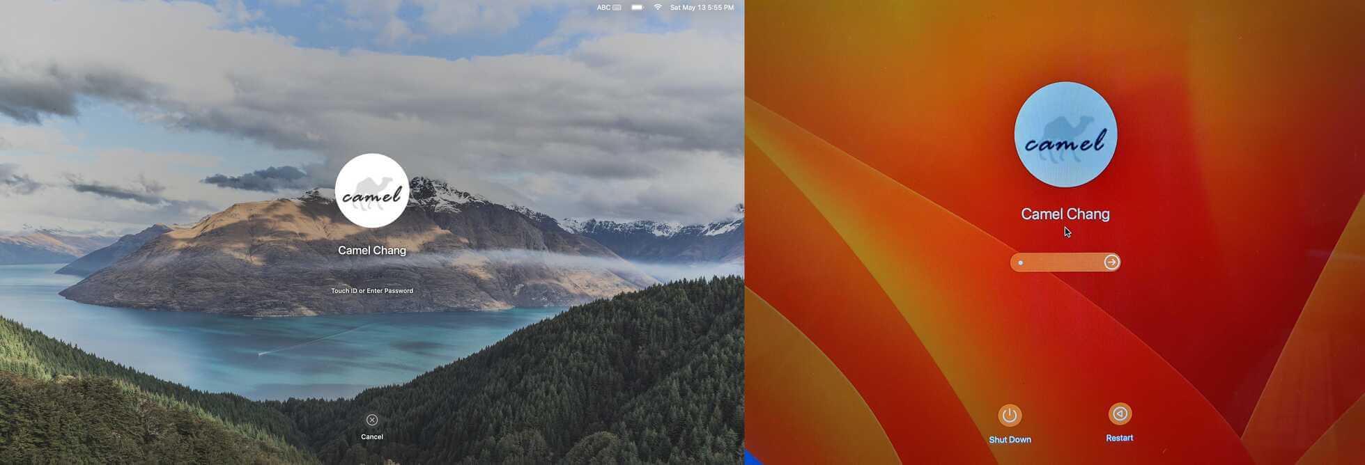 螢幕鎖定(左)/ 開機畫面(右)