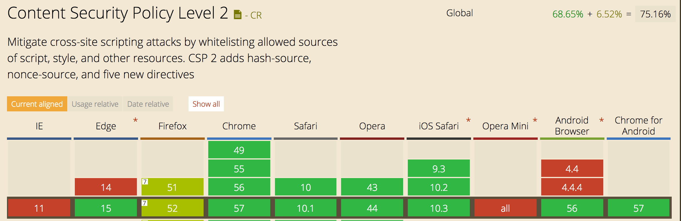 Content-Security-Policy 普及的標準為 1.0 版本